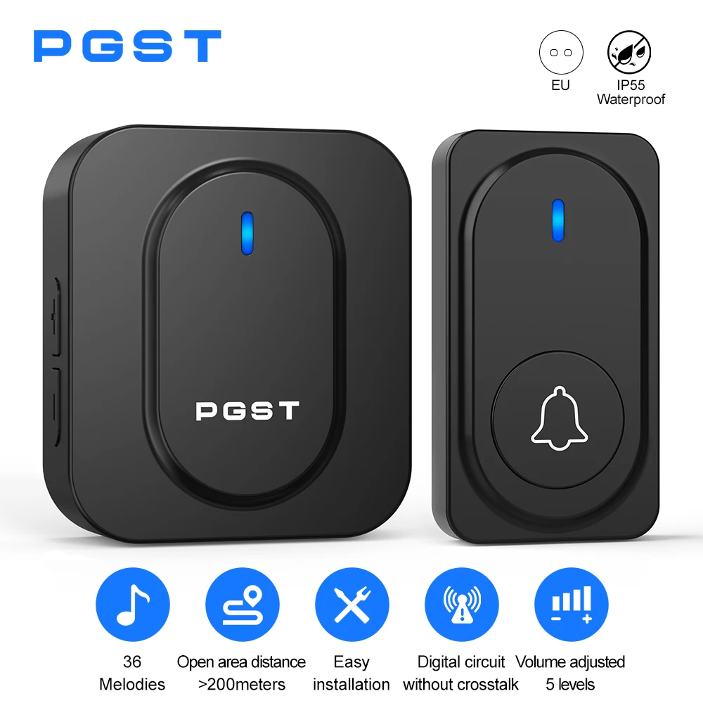 PGST bezdrátový doorbell 36 zvonkohra LED lehký domácí záruka alarm dveře zvon vodotěsný outdoorové knoflík lehko DIY instalace
