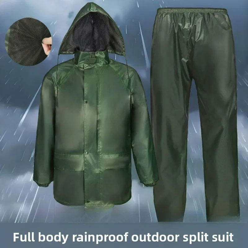 Oliva zelená dvoudílná nepromokavý plášť a déšť kalhot sada, storm-resistant záchranné ochranný mechanismus, větruodolná a wear-resistant