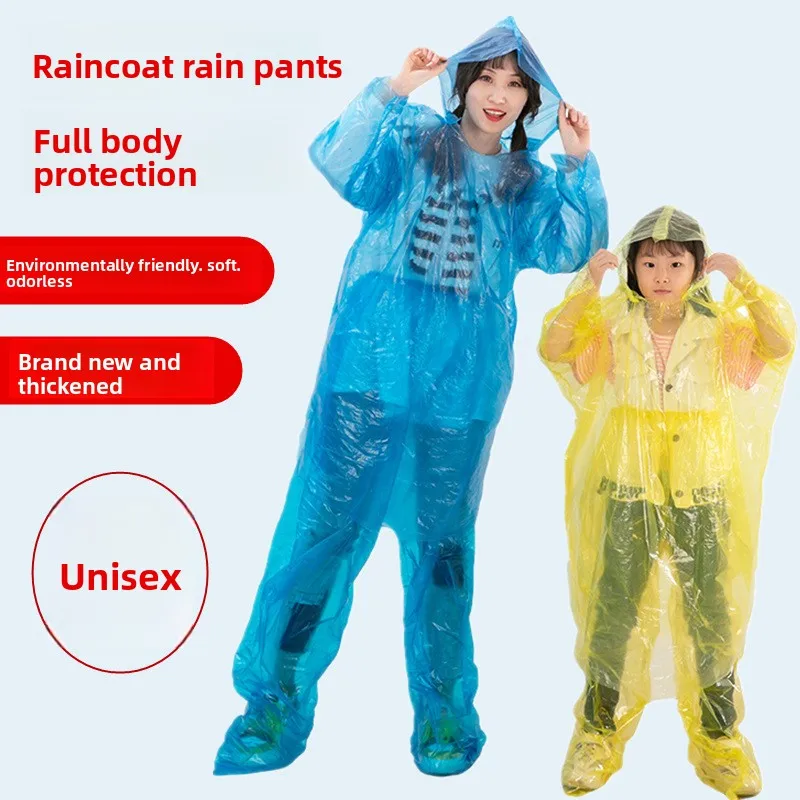 Jednorázové rozseknout nepromokavý plášť a déšť kalhot set: zahuštěný, full-length, těžký odolný proti dešti, průhledná nadrozměrné pro dospělé a děti