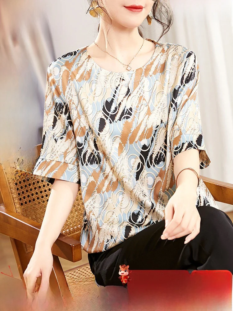Ele hedvábí satén dámská nejvyšší maminka léto faionable nový sle middle-aged a ly high-status paní hedvábí blůza