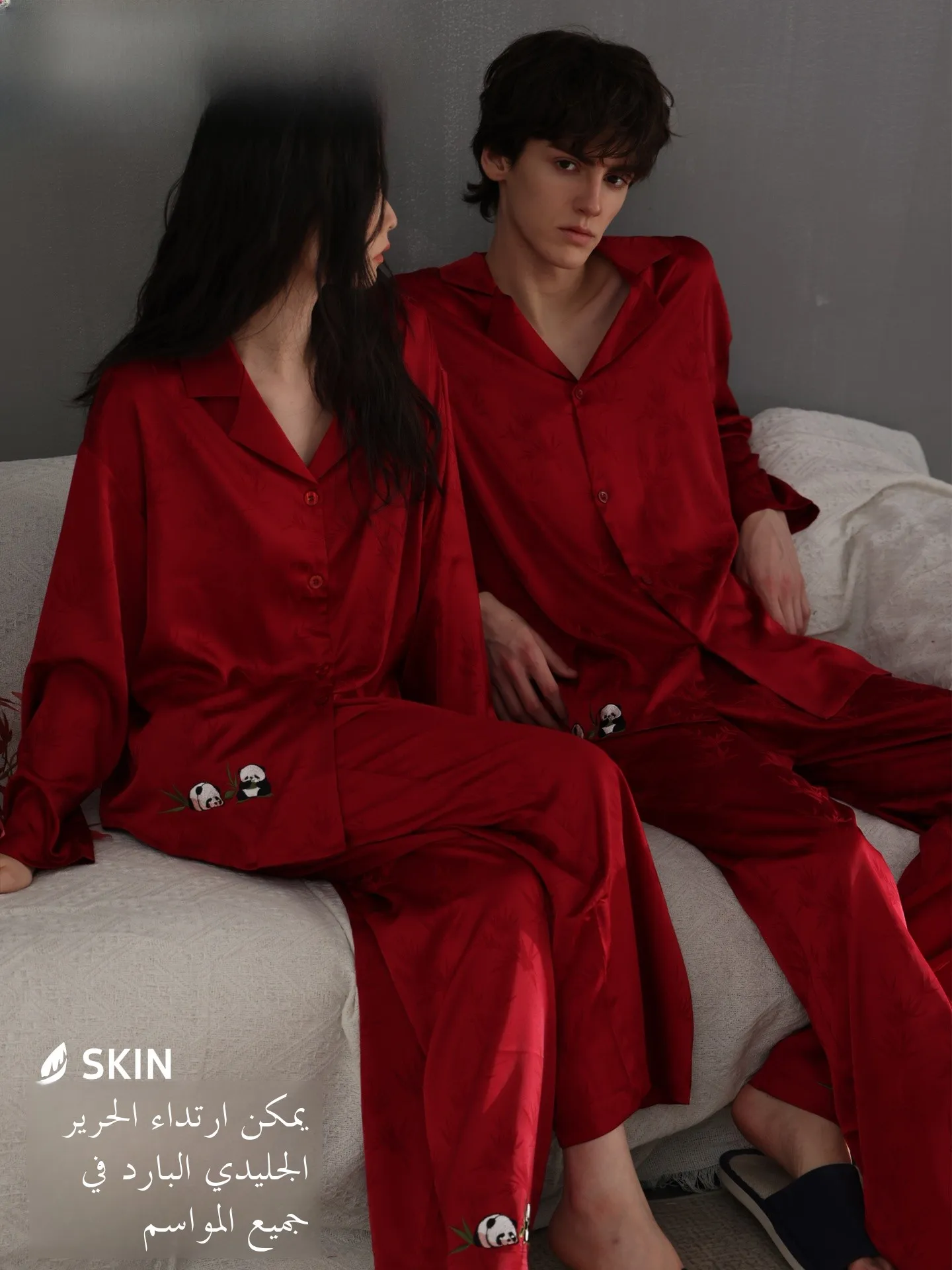 Fenteng péče párů spwear červená led hedvábí dlouhé sve svatební nový domácí volný čas oblek ležérní pohodlné měkké široký noha kalhot