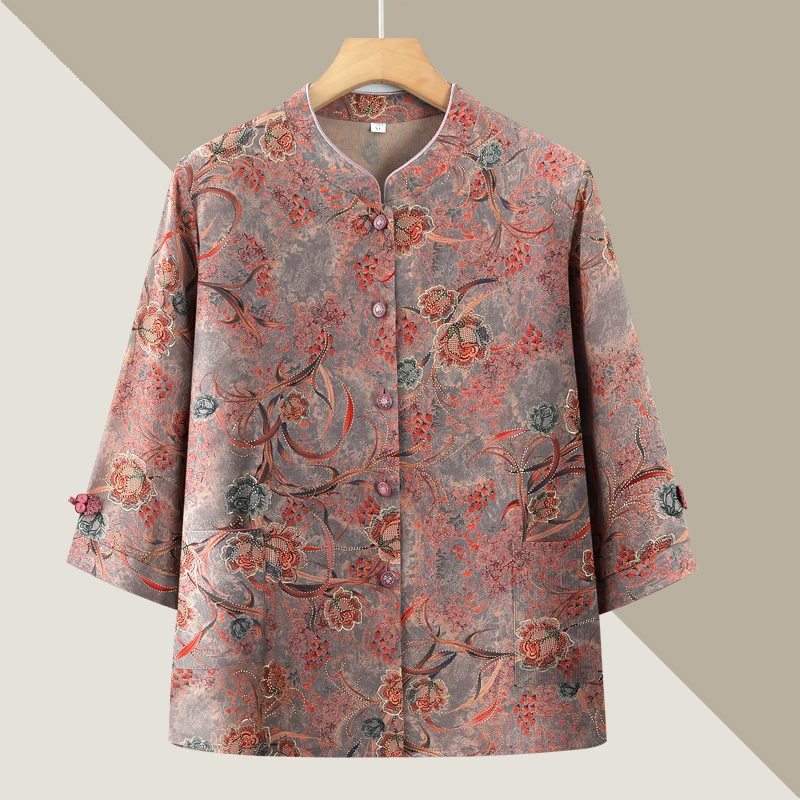 Andma sle hubený sve irt dámská léto faion mid-aged a ly nový mom's tang kostým sada volné odpovídat květinová střih