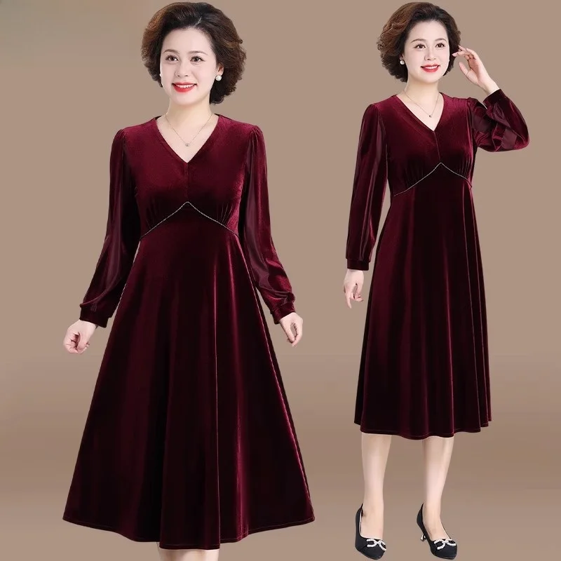 Faionable mid-aged dámská samet dr ele wide-cuffed button-up midi dr polyesterová textilie kolo neline květinová pat...