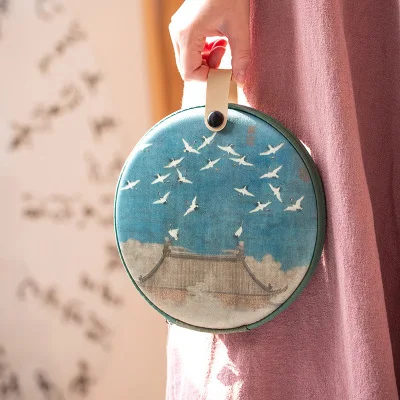 Pu'er čaj dort brašna, přenosné domácnost kolo úložný skříňka, na zip, bílá čaj úložný skříňka, retro balení brašna 357g