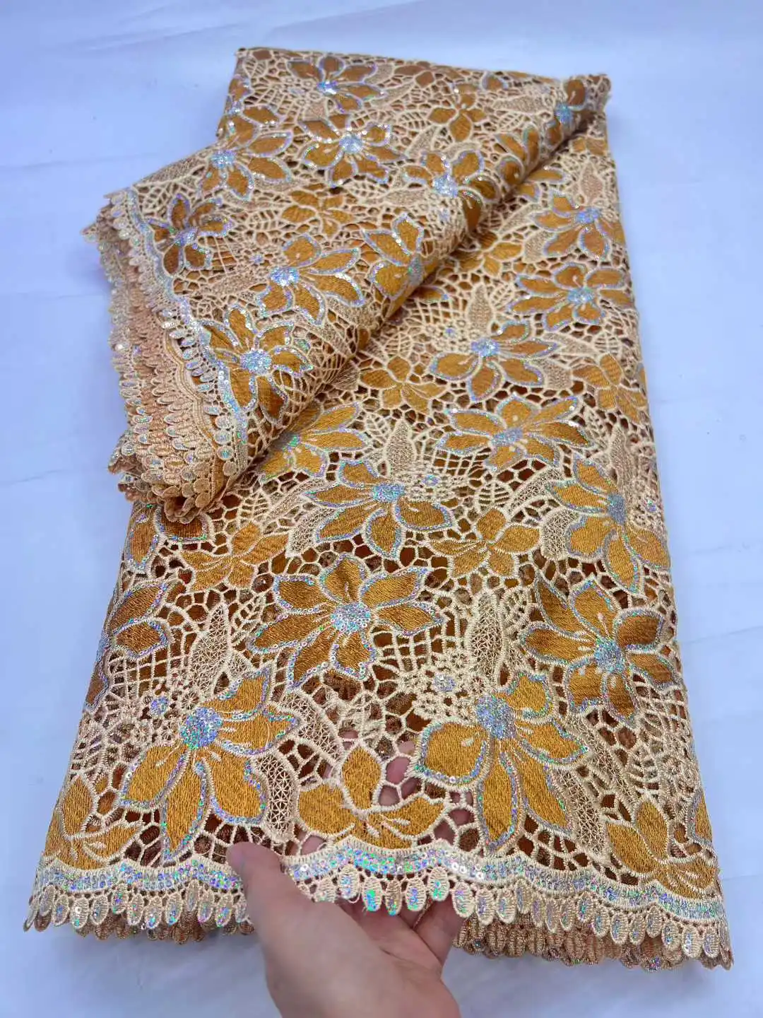 Nejnovější africký guipure šňůra krajka textilie 2026 styl nigerijské voda rozpustné krajka fabrics 5barvy dvory pro svatební večírek hd