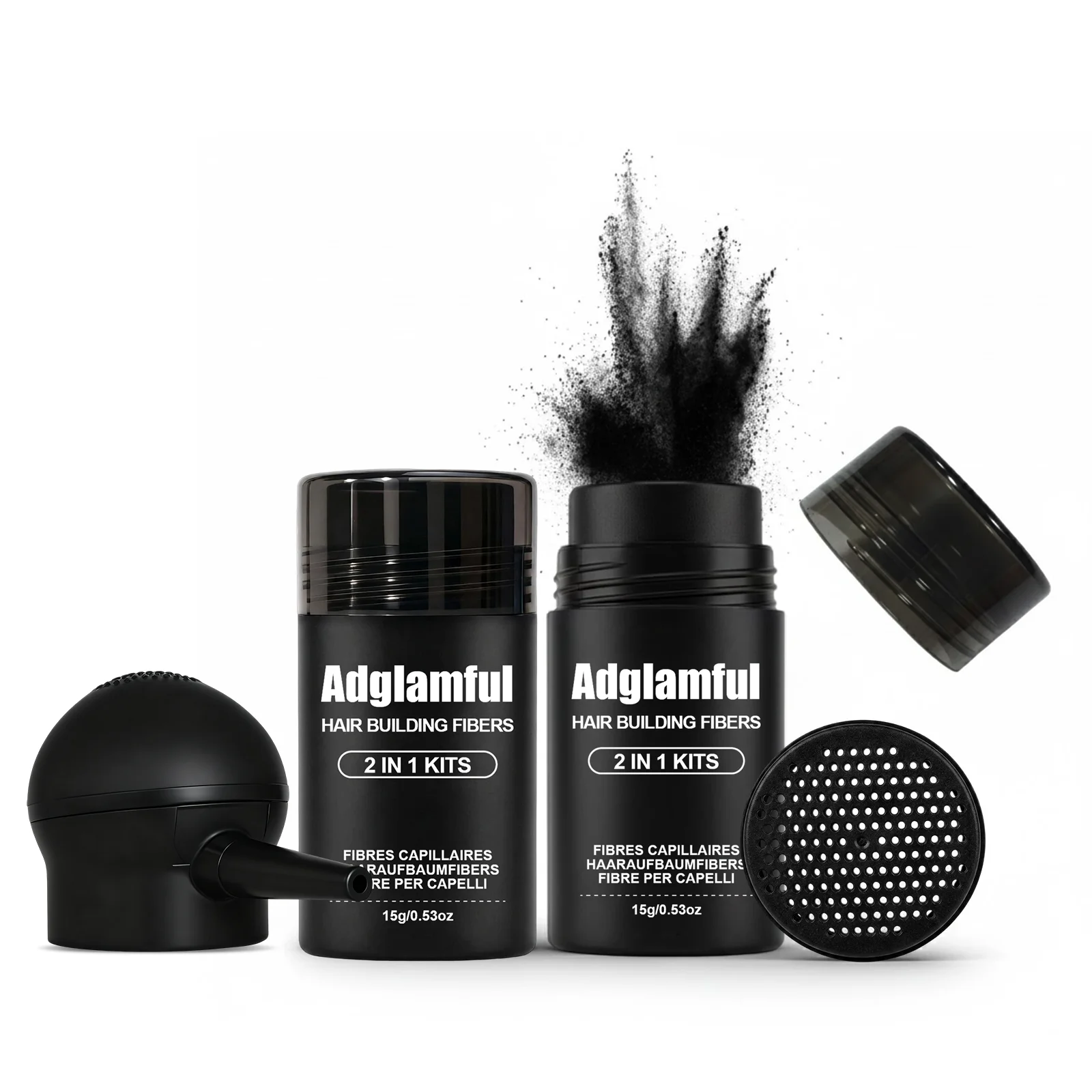 Adglamful vlasy vlákno kit: 2se vlákno pudry + rozprašovací láhev pro okamžitý zahuštění & objem – rychlý 30 sek stylingový