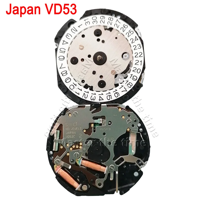 TMI VD53 křemen elektron pohyb size: 12 ¾‴ height: 4.57mm 6pro ručičky chrono (sec, 60 min) 24 hour/date 3čepel, 6pro, 9 malý sekund