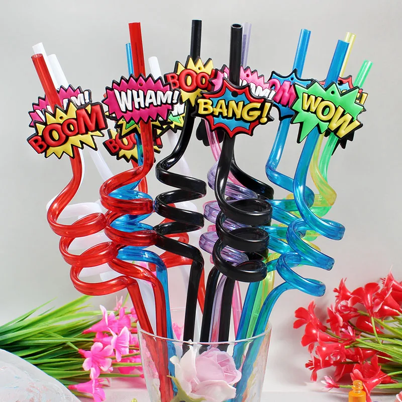 12-pack z kreslený animal-themed brčka, znovu použitelný, dokonaný dle večírek laskavosti, pro narozeniny strany, a dle svatební dekorace,