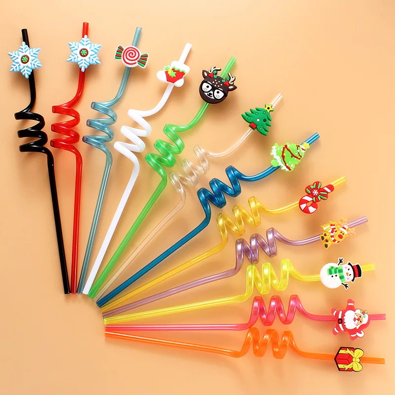 Sada z 12 christmas-themed spirála brčka znovu použitelný spirála brčka vhodný pro narozeniny strany, barů, svatby, a blížní occasio