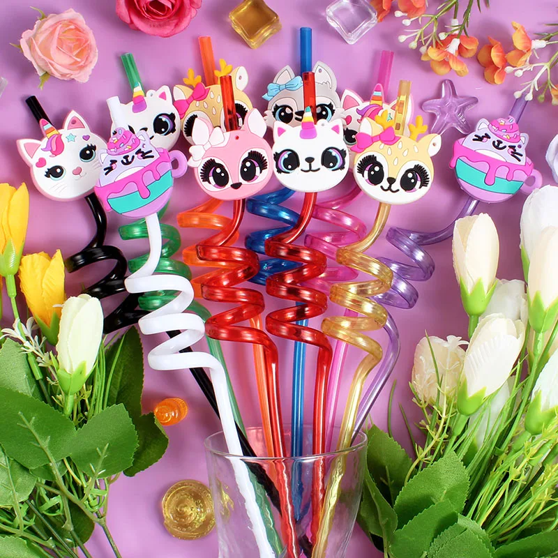 12pcs26 cm znovu použitelný kreslený kocour plastový brčka, kroucené brčka, dětské narozeniny večírek dekorace, večírek laskavosti pro dívčí