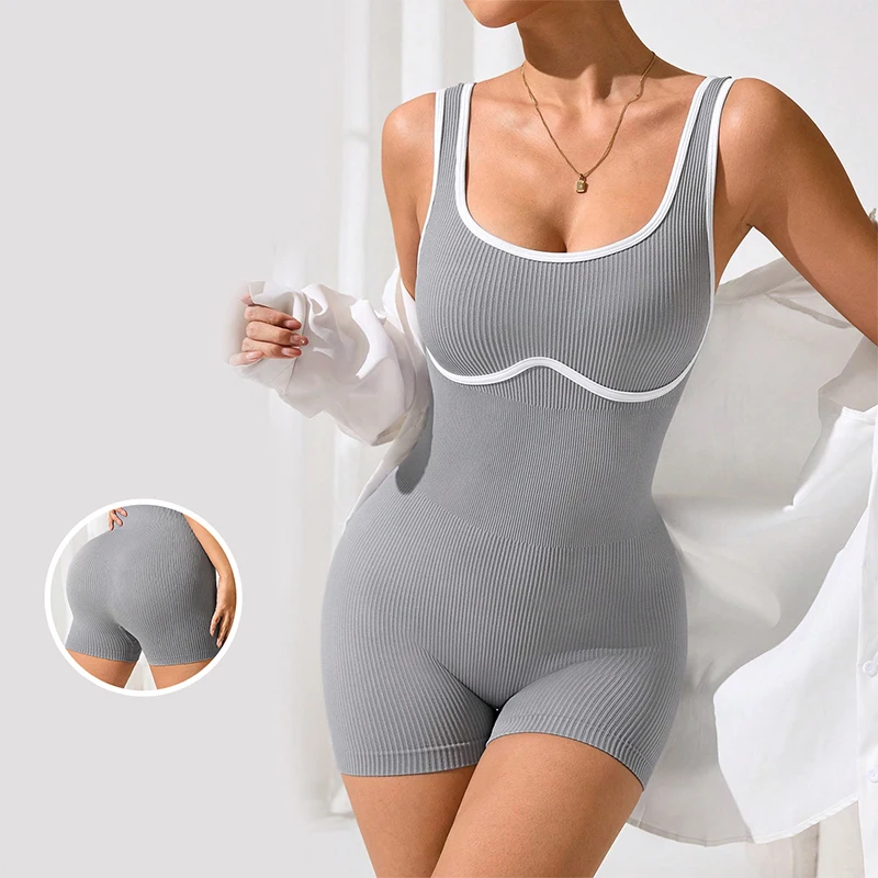 Ženy u-neck strappy joga kombinéza bezešvý vysoký elastická žebrované jednodílné sportwear americký kontrast barva striktní fitka kombinéza