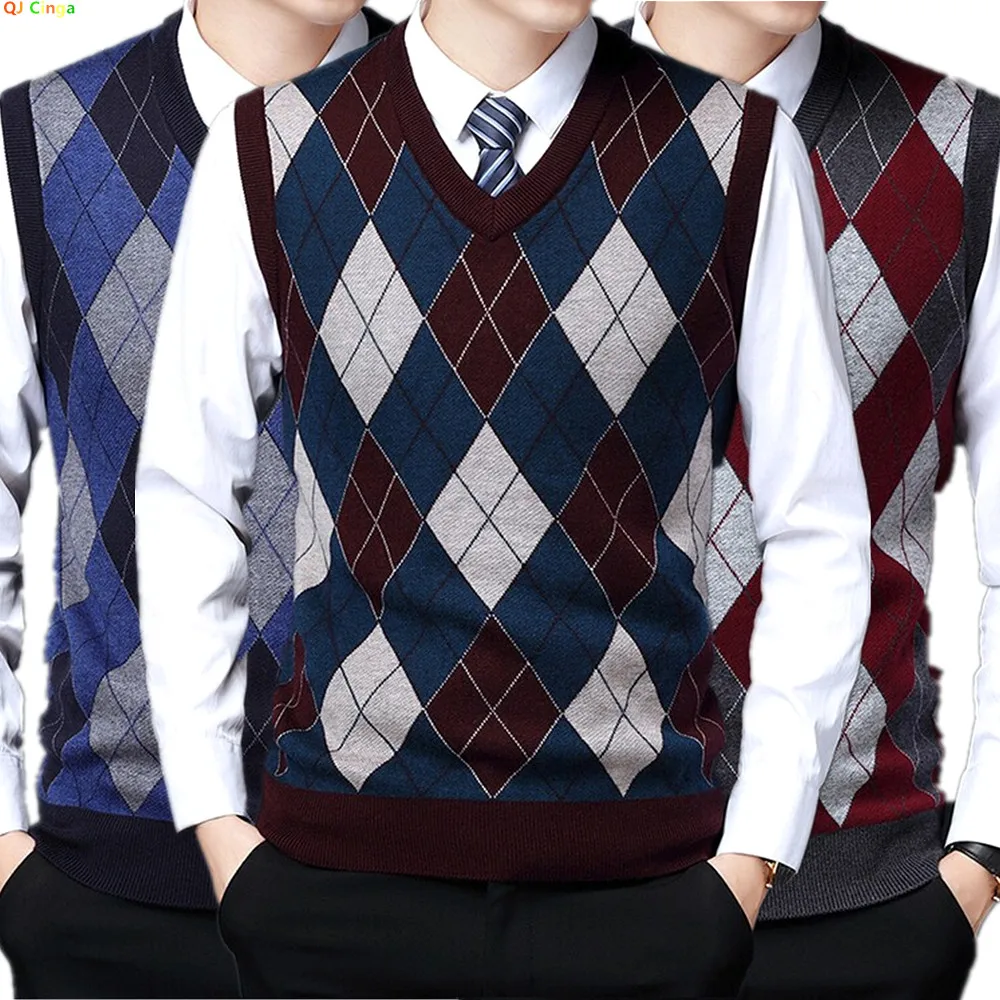 Muži houndstooth svetr vesty vintage bez rukávů v-neck pletené zboží univerzitní studenti manželé volné vynosit suester para muž sloh