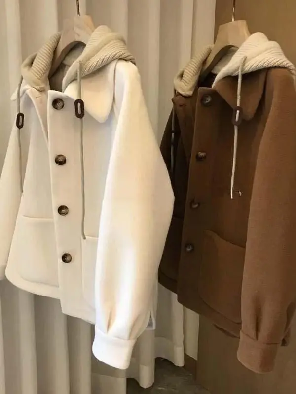 Zima 2025 nový příjezd dámská krátký kabát ležérní styl zlatý knoflík zdobené korálek mykaná příze bunda kolo krk dlouhé rukáv