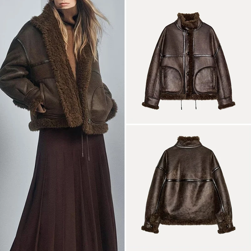 2024 nový evropan a americký styl zahraniční obchodovat dámská nový móda stánek límec oboustranný krátký bunda bunda dámy