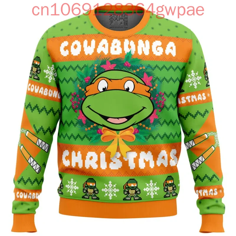 Cowabunga michaelangelo christmasteenage mutant nindža želvy pánské a dámská podzim a zima ošklivý vánoce svetr
