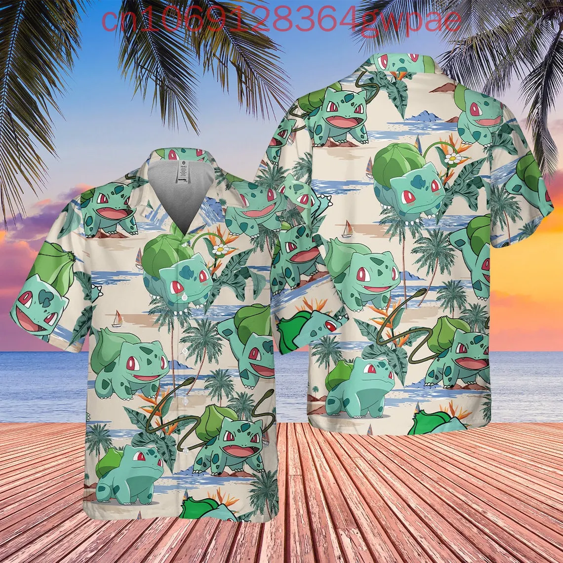 Pokémon bulbasaur havajská košile muži ženy děti krátký rukáv y2k knoflík košile squirtle léto havajská košile ležérní pláž košile