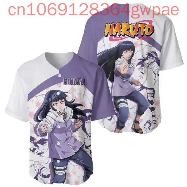 Naruto hinata hyuga baseballová dres muži a ženy knoflík košile léto ležérní děti hustý baseballová dres