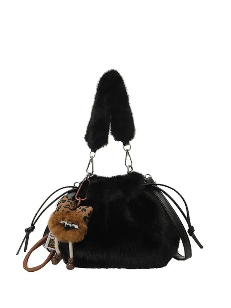 Zima zaměnit dámská faionable načechraný buet brašna ležérní slung brašna kabelka složený kožich crossbody brašna americký retro sle