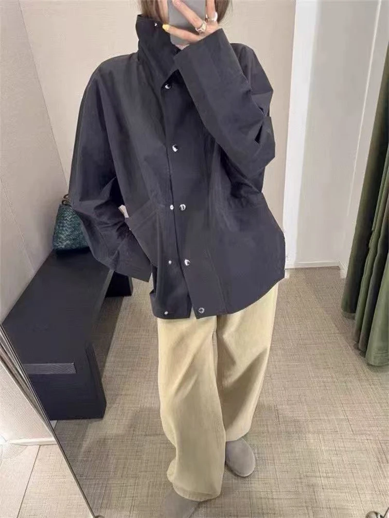 Faionable vysoký límec batwing sve a-line jaet kabát ele bavlna blend retro sle dámská ort svrchní kabát