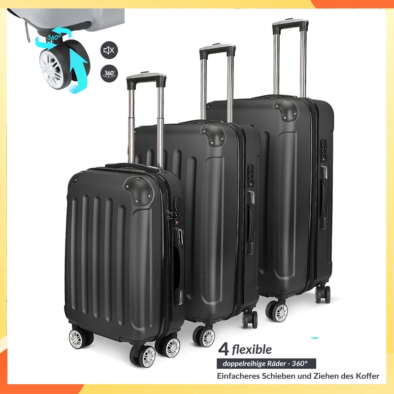 Rosahqnda natvrdo lastura kufr, 3-piece cestovní kufr set(28/24/20), ruka brašnářské, ABS materiál, černá, šedá