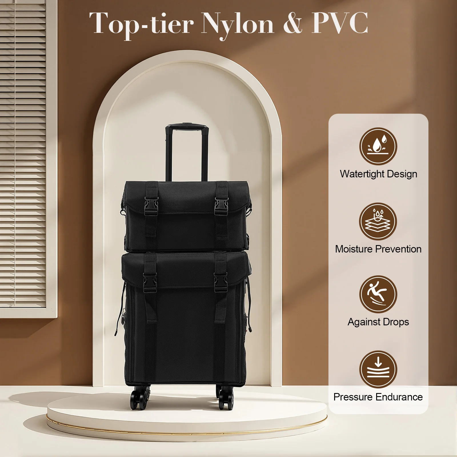 Přenosné líčení vozík pouzdro třpytka kol odborný velký kosmetický brašna výšivka líčení krása rolley brašnářské kufr