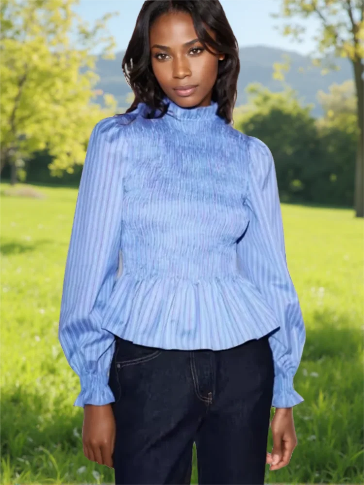 Evropan a americký styl značka jaro nový produkt dámská versatile dlouhé rukáv stánek nahoře límec voštinová přehoz košile 2026