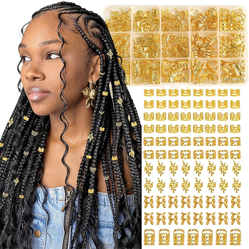 210pcs zlato stříbro barva dreadlock vlasy korále dívčí ženy DIY copánky vlasy příslušenství vlasy šperků dreadlock vlasy korále