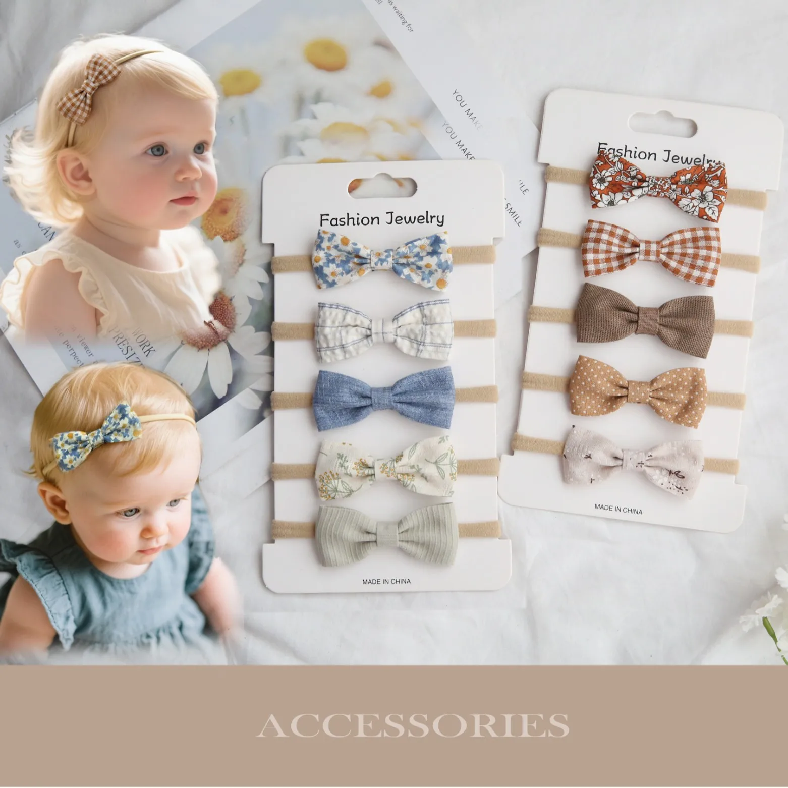 5pcs/set ruční elastická vlasy kapel pro dívčí roztomilá luk čelenky děťátko headwear kravaty elegantní dětské příslušenství módní elastická