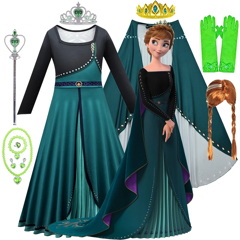 Mražený korunovace anna disney kněžna dívčí cosplais dlouhé rukáv kostým karneval večírek děti plášť oblečení narozeniny tisk šaty