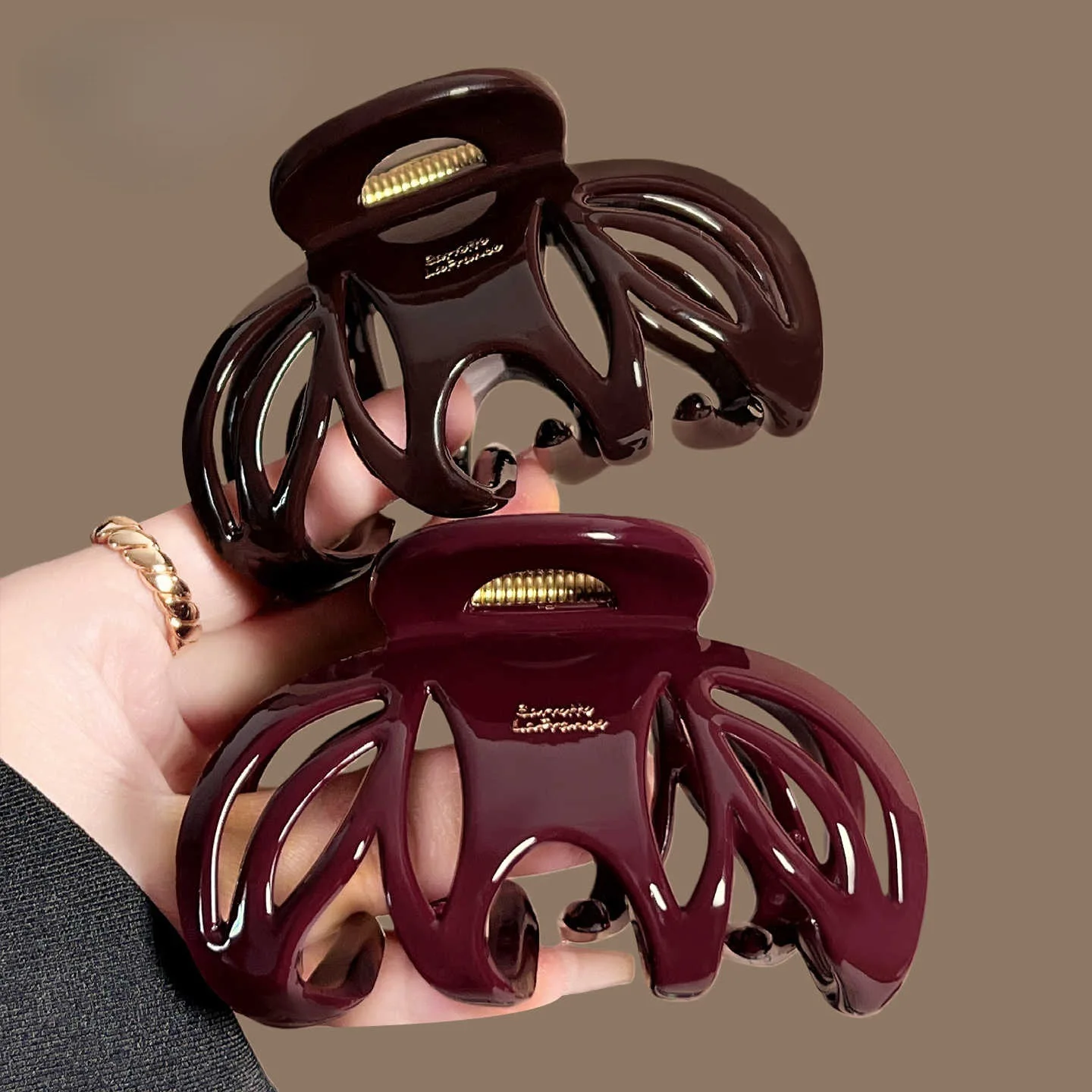 Francouzský červená collection! velký úchop dopisy zlato nálepka zpět hlava updo kukléřka mléčová klip vlasy příslušenství headwear sponka vlasy dráp