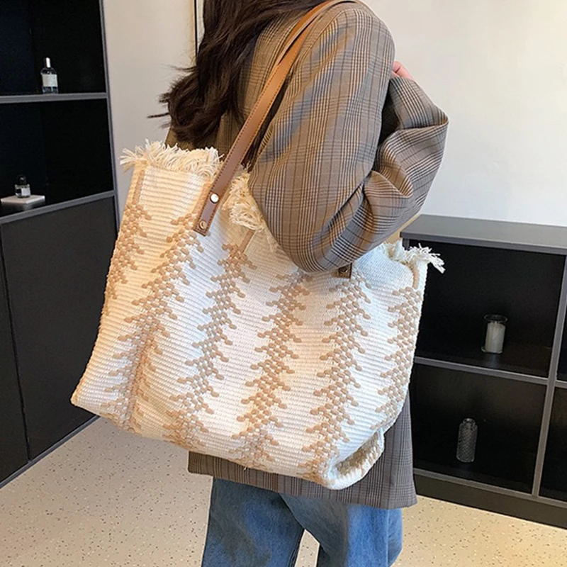 Dámská ležérní velký schopnost plátna vláčet brašna střapcem okrajové nejvyšší madlo podpaží bedra pro pláž cestovní nákup zaměnit