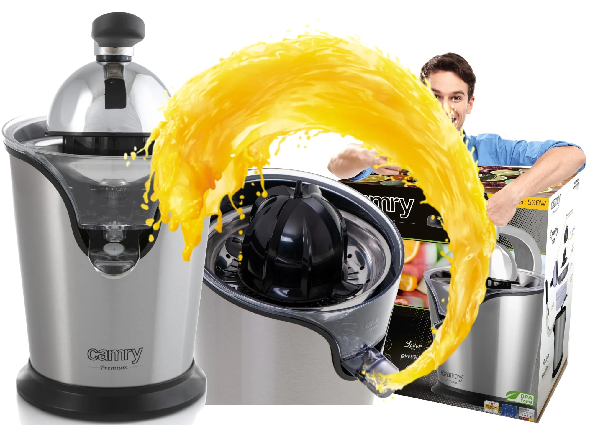 Citrusy odšťavňovač elektrický 500w 2se výměnnými kornouty non-ribbon auto start/off ocel pouzdro odborný