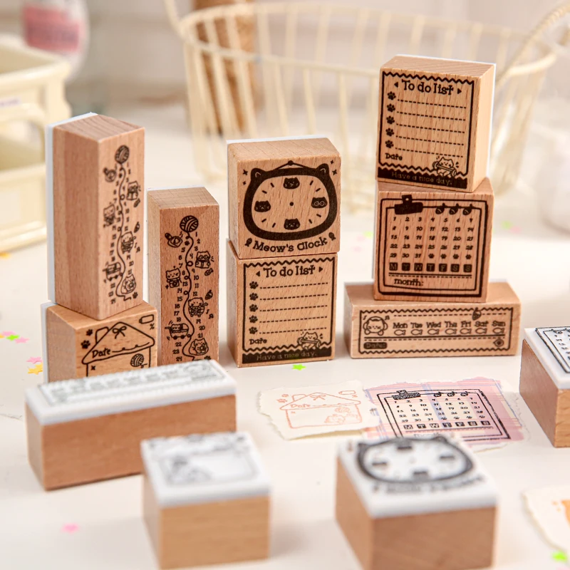 1 PC tlukot srdce kocour řada kawaii kreslený kocour dřevěný pečeť plánovač příručka DIY scrapbooking dekorace roztomilá student pečeť