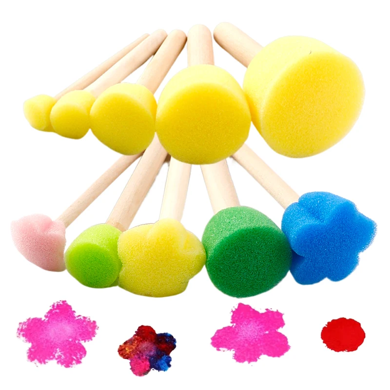 10 ks sada dřevěný madlo houba hlava houba kartáč děti DIY malba houba pečeť sada barva graffiti tvořit číslo jednotné umění kartáč