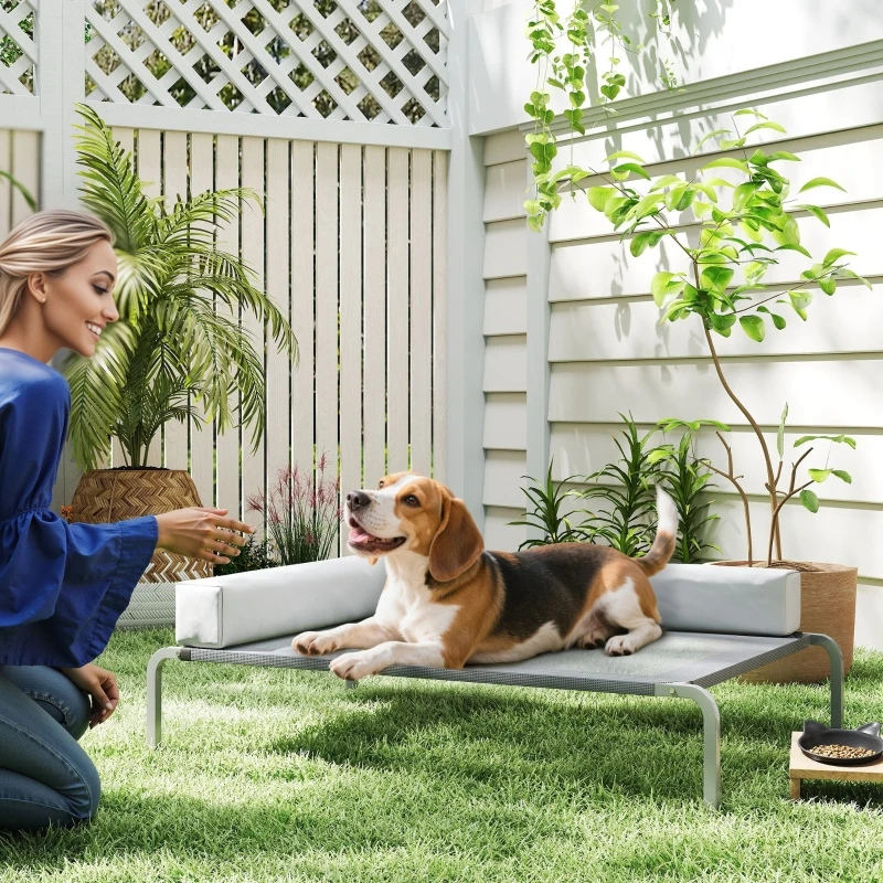 Outdoorové pes postel, elevated pes postel pro medium-sized psů, s l-shaped polštářek 110x75x30cm, lehký šedá