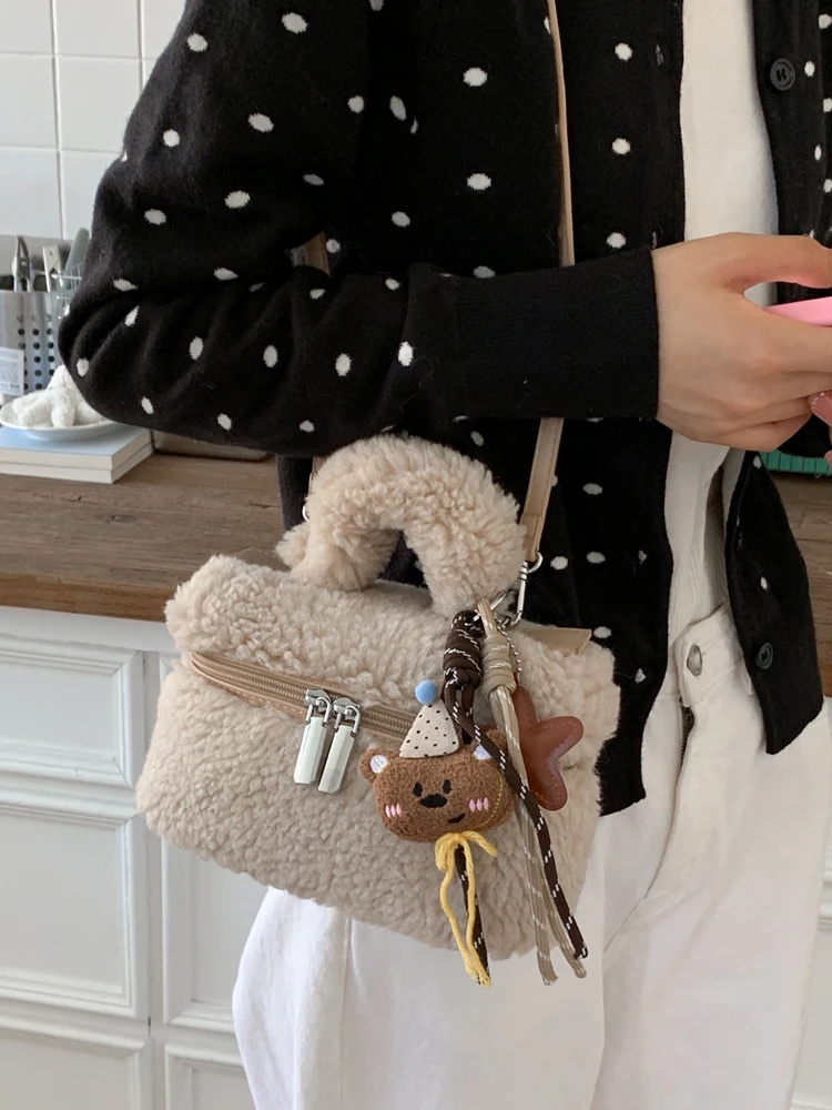 Korejské sle beránek kožich kabelka dámská oulder crossbody brašna skříňka opice faionable podzim zima kabelky měkké madlo