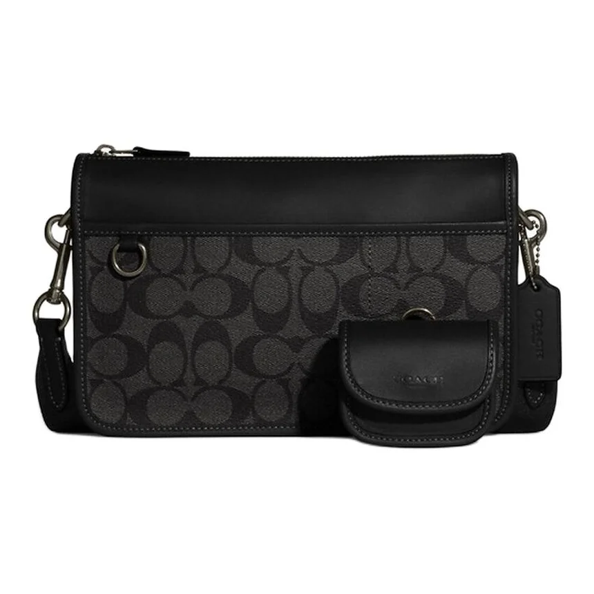 Autobus dědictví plátna s kůže crossbody brašna střední rozměr pánské černá & šedá C8141-QBMI5