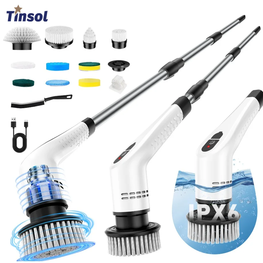 TINSOL 12 v 1 elektrický úklid kartáč s teleskopická madlo, multifunkční domácnost podlaha a kuchyň úklid nářadí