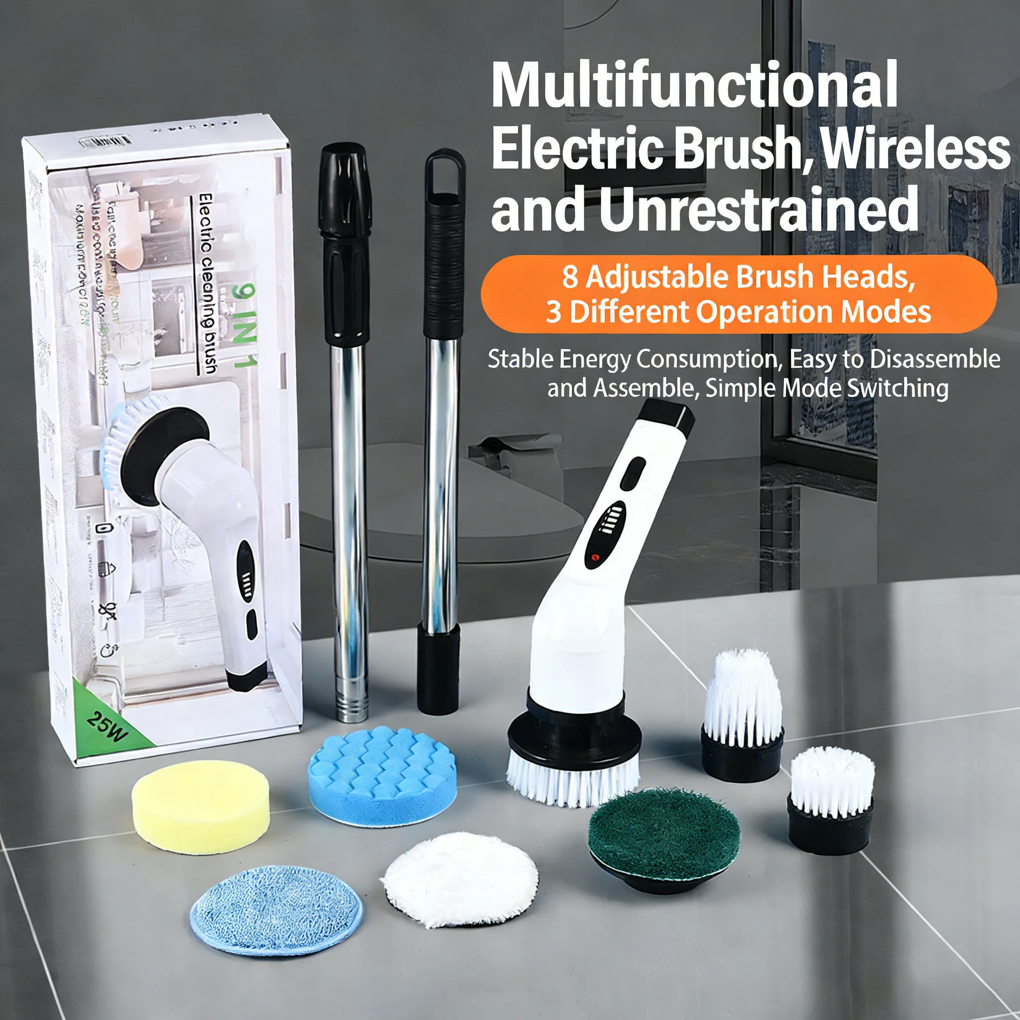 360à‚° rotujícího natáčet drhnoucí elektrický úklid kartáč s 7 nastavitelný kartáč hlav úklid kartáč pro rohy klozet kuchyň koupat
