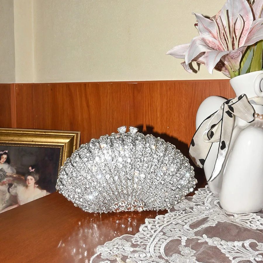 Francouzský kreativní lesklý plný diamant lastura brašna temperamentní jednoduchý lehký luxusní vysoký náhled broušené sklo rýt brašna hlavní jídlo brašna
