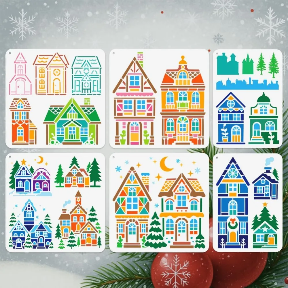 6ks vánoce dr. house vzorníky pro malba znovu použitelný borovice strom šablona kresba šablon dr. house DIY řemeslo barva šablon pro zeď