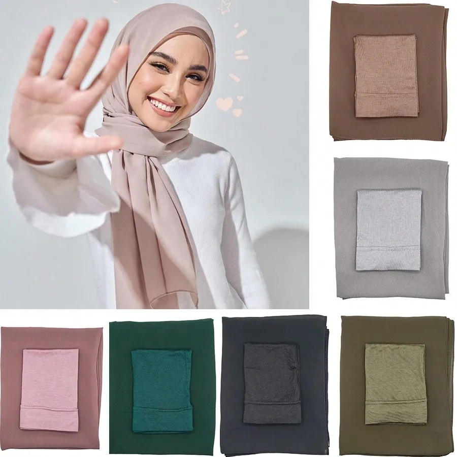 2pcs/set dámská hidžáb šála a čepice sada pro denně nést muslimové hidžáb šifon šála a elastická čepice turban trubice celistvý headscarves