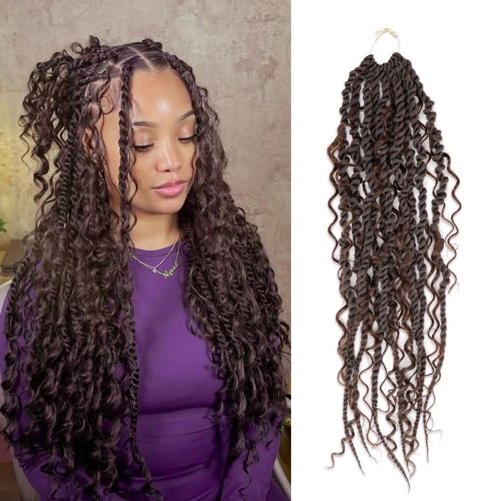 Syntetická kroutit háčkování copánky vlasy prodlužování kudrnaté končí pre-looped pro ženy lehko instalace nízko údržbu oplet vlasy