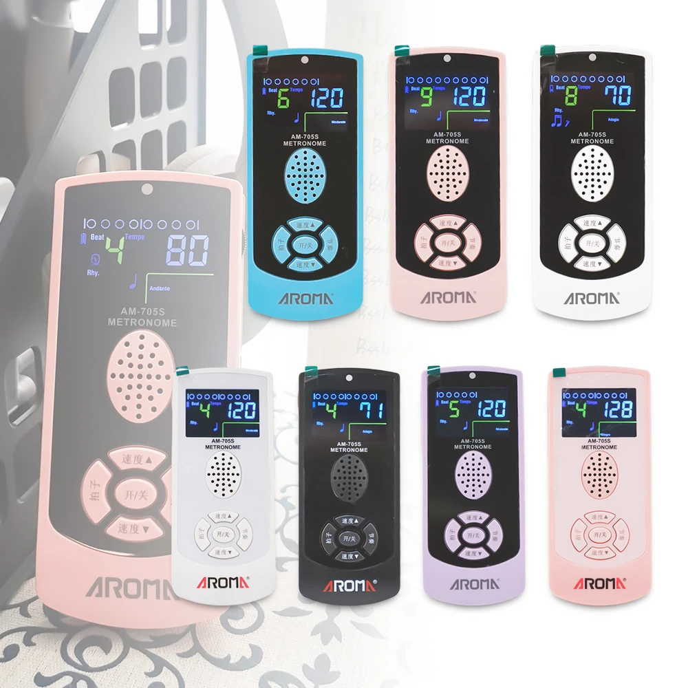 Vůní AM705S digitální metronom anglický hlas 9 rhythms barva obrazovka rychlost nastavitelný 40-208 BPM vnitřní baterie metronom