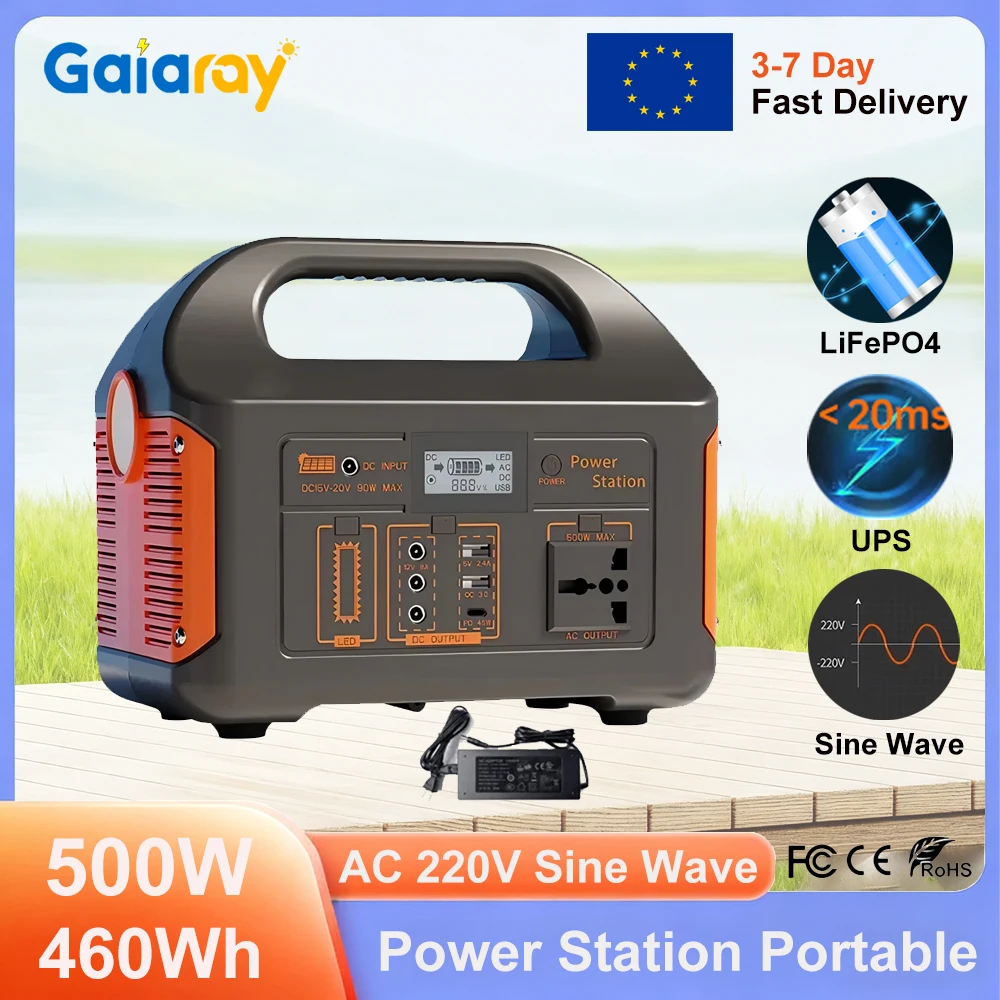 Gaiaray přenosné energie nádraží 500w 460wh lifepo4 nabíjení nádraží outdoorové energie rostlina upy solární vyvíječ pro kemping apartmá