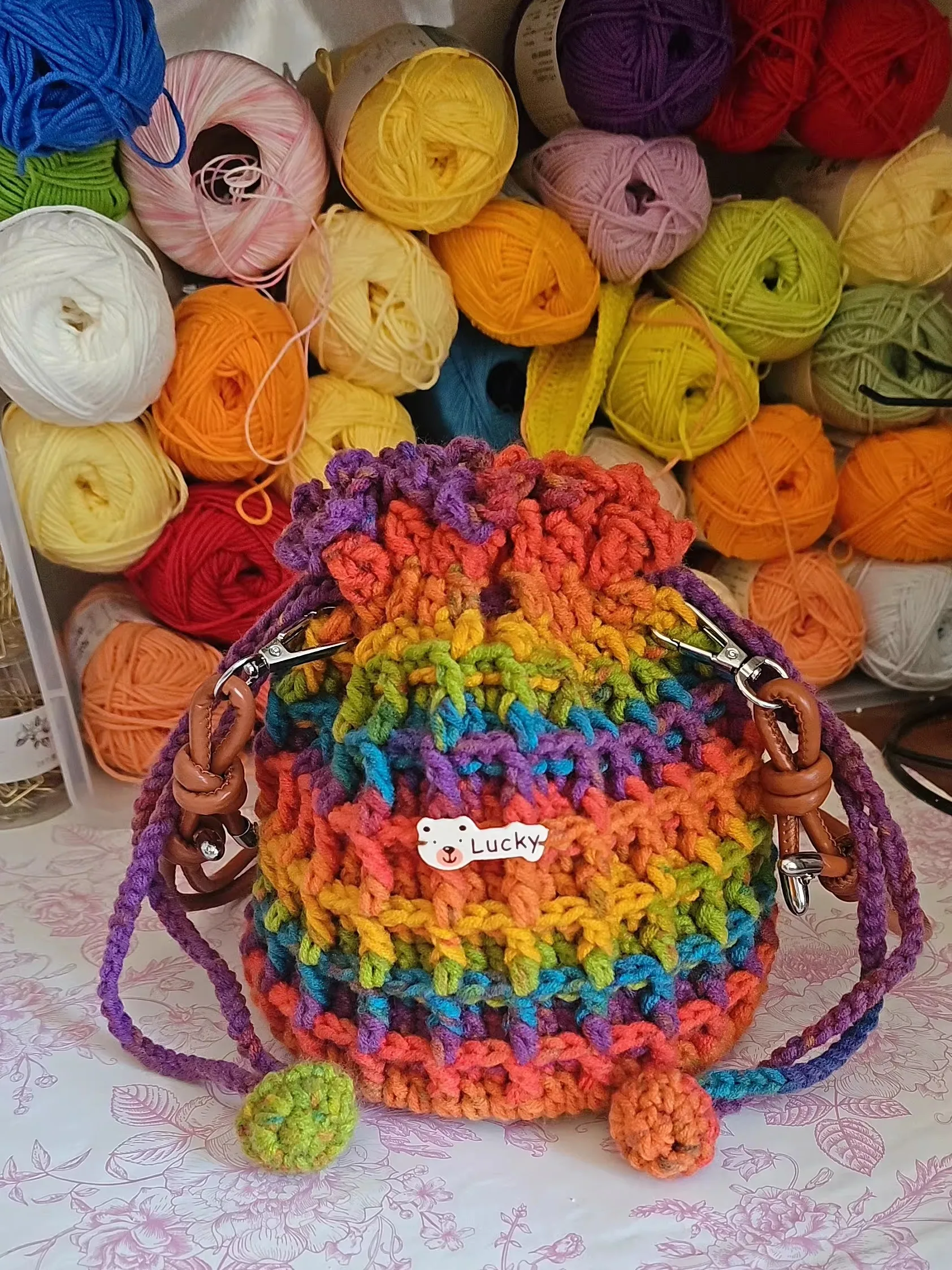 Hanrted duha buet brašna mobilní telefon brašna pro dívčí háčkované wfle střih dutý vyndat malý crossbody brašna