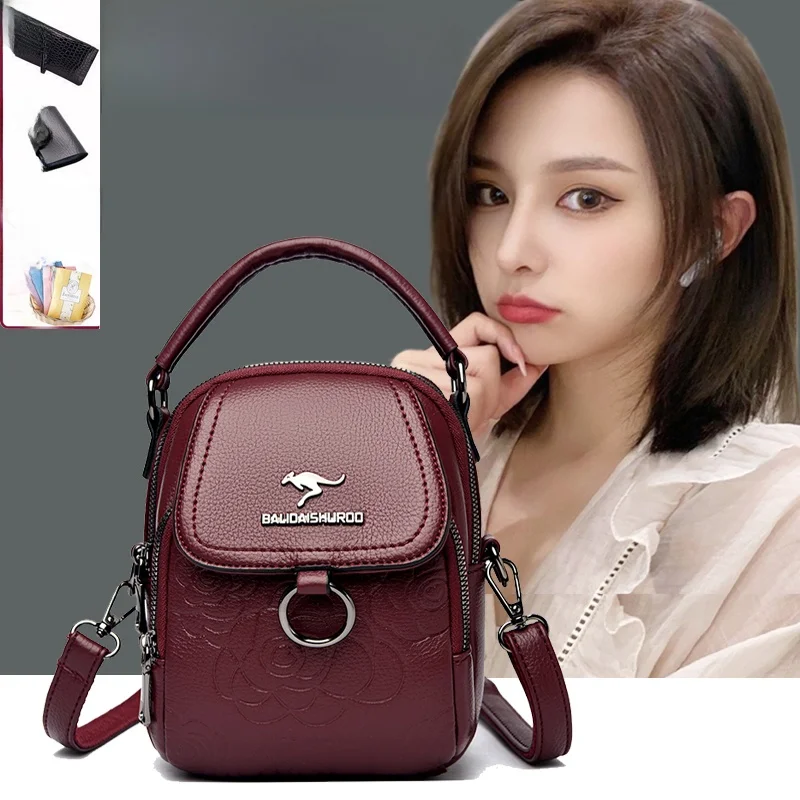 Kůže crossbody brašna dámská ležérní faion mobilní telefon brašna velký capaci vícevrstvé po jednom oulder závěs brašna pro maminka