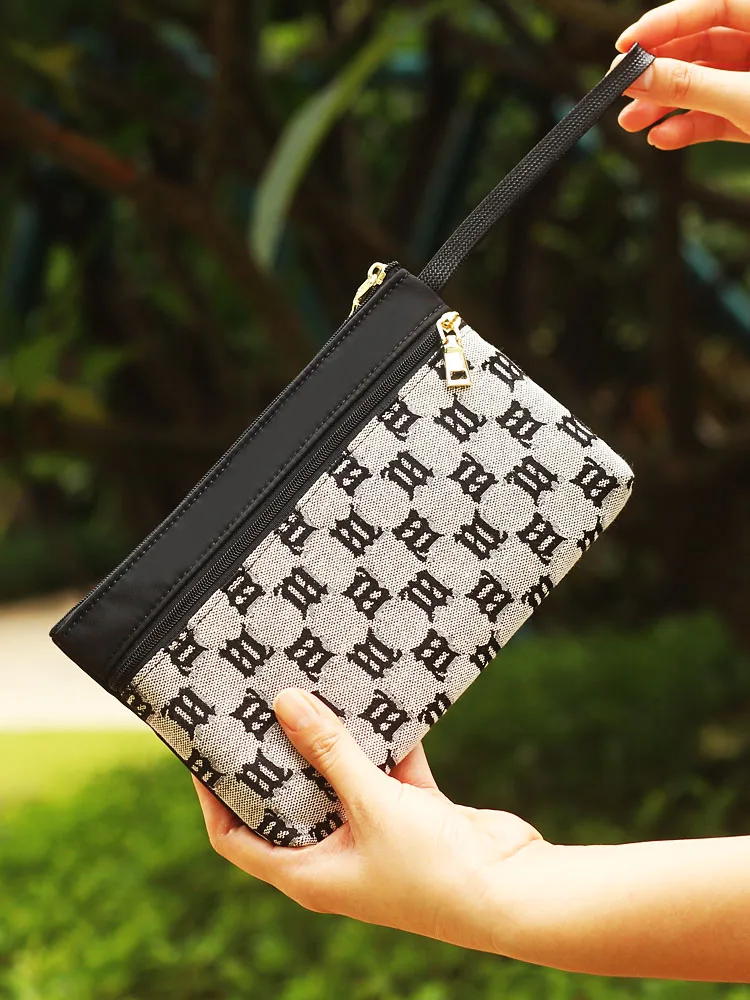 Bývalý velký capaci mobilní telefon brašna s ruka řemen dvojitý na zip devizy klíč látka malý brašna faionable geometrické střih
