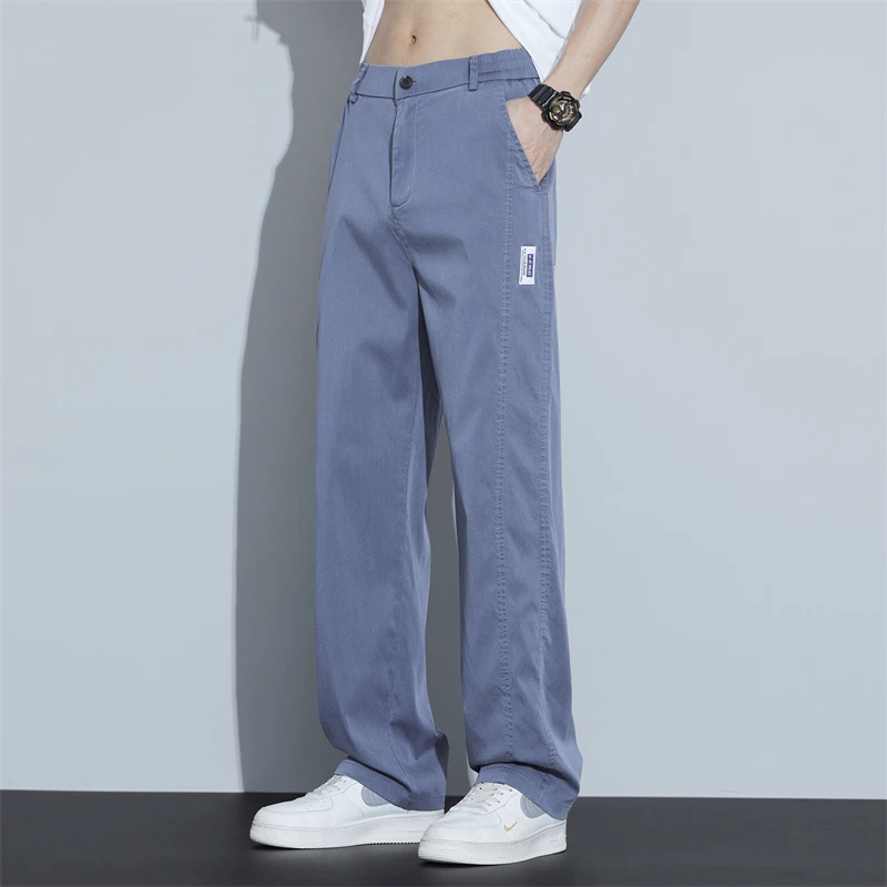 Pánské moderní módní pohodlné volné přímo noha kalhot pro outdoorové sportovní volný čas lehoučké prodyšné led hedvábí kalhot