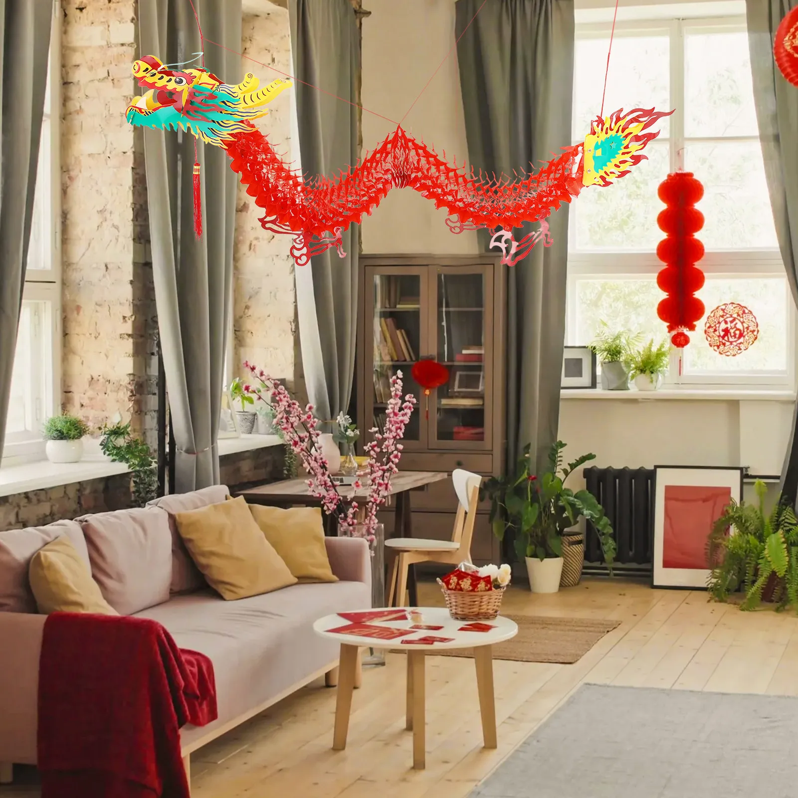1M Čínské nový rok lanterna drak vzhled plastový závěsný dekorace pro dveře strom okno slavnost použít Čínské drak lanterna